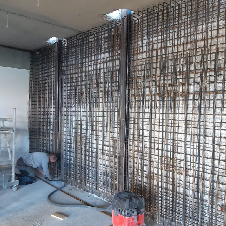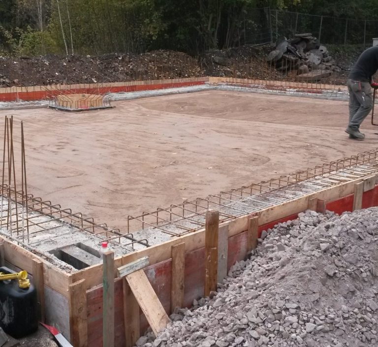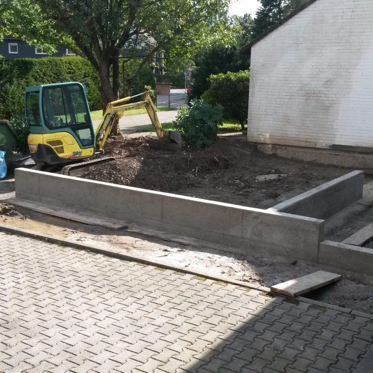 Erstellung einer Bodenplatte und Betonwand, im Bestand
